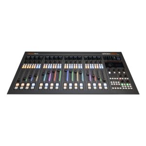 8-fader version of the Oxygen 3000 Plys with 5 microphone inputs and a 16-channel Dante I/O interface
