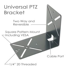 Mount PTZ cameras, projectors, computers, and other audiovisual equipment to an industry-standard 1.5″ NPT threaded pipe using this heavy-duty mounting