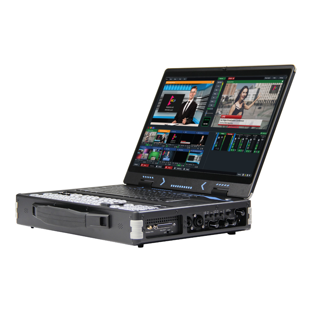 The Switchblade Systems Recon redefines portable live production by combining a high-performance workstation with a dedicated tactile control surface in a compact, laptop-style design. Featuring a folding 17.3-inch Full HD monitor, the Recon provides a comprehensive workspace for vMix users who require a mobile solution without compromising on professional hardware control. This integrated system eliminates the need for separate controllers and external cabling, allowing producers to deploy a complete broadcast environment in minutes from a single, transportable unit.